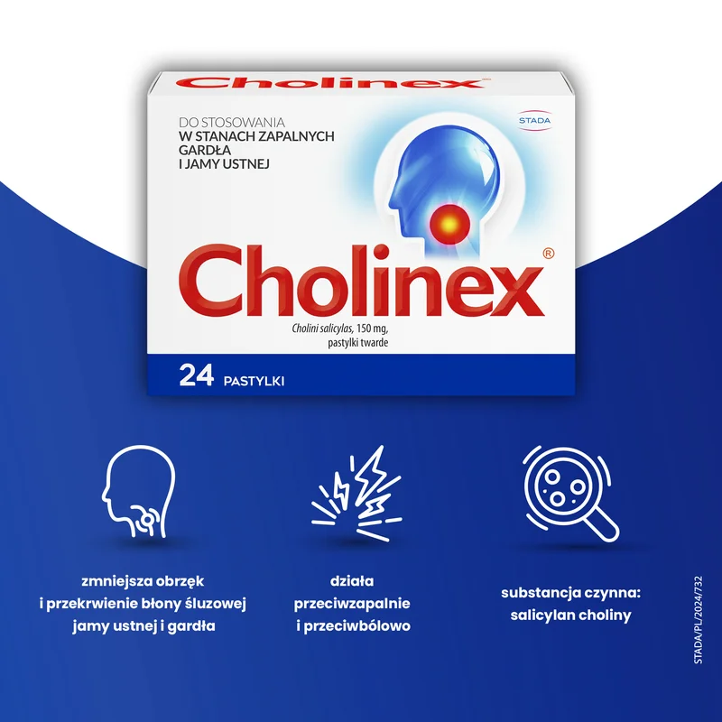 Cholinex pastylki do ssania na ból gardła 24 sztuki