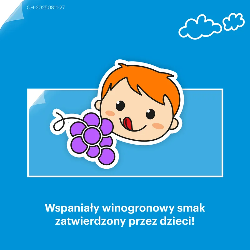Pozostałe składniki to: glikol propylenowy, glicerol, sodu benzoesan, sukraloza, maltitol ciekły, sorbitol ciekły krystaliczny, aromat winogronowy 936.1368U, sodu diwodorofosforan dwuwodny, kwas fosforowy, disodu edetynian, woda oczyszczona.