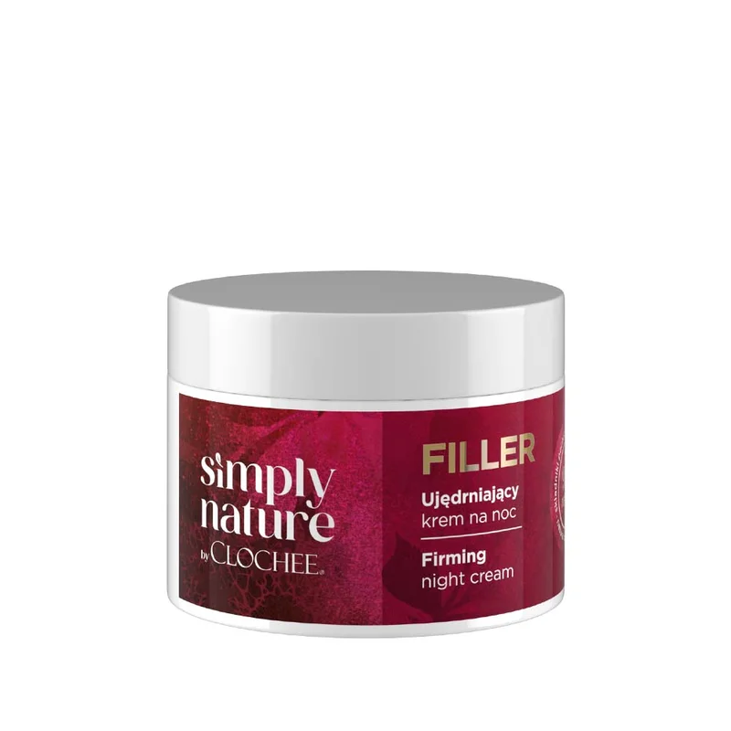 Clochee Simply Nature Filler Krem na noc to produkt kosmetyczny, który nawilża i regeneruje skórę podczas snu. Formuła zawiera składniki pochodzenia naturalnego, wspierające odbudowę lipidów oraz poprawiające elastyczność skóry. Krem ma na celu redukcję widocznych oznak starzenia oraz przywrócenie skórze blasku. Przeznaczony do stosowania na noc, sprzyja poprawie kondycji skóry, sprawiając, że staje się ona gładka i jędrna.Składniki/Ingredients
