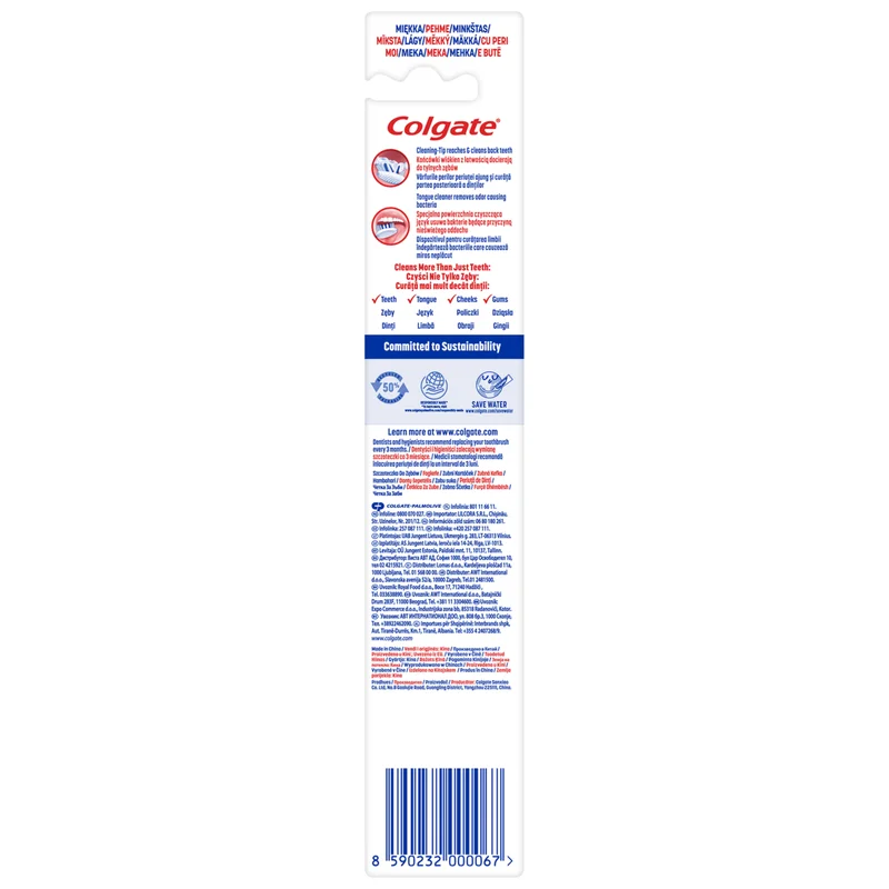 COLGATE CLASSIC DEEP CLEAN SOFT Szczoteczka do zębów to wyrób medyczny. Produkt zaprojektowany z myślą o codziennej higienie jamy ustnej. Charakteryzuje się miękkim włosiem, które delikatnie czyści zęby i chroni dziąsła przed podrażnieniami. Umożliwia dokładne usunięcie płytki nazębnej, wspierając utrzymanie zdrowych zębów. Rączka szczoteczki jest ergonomiczna, co zapewnia komfort podczas szczotkowania. Może być stosowana przez osoby dorosłe w ramach codziennych zabiegów higienicznych.Zawartość opakowania