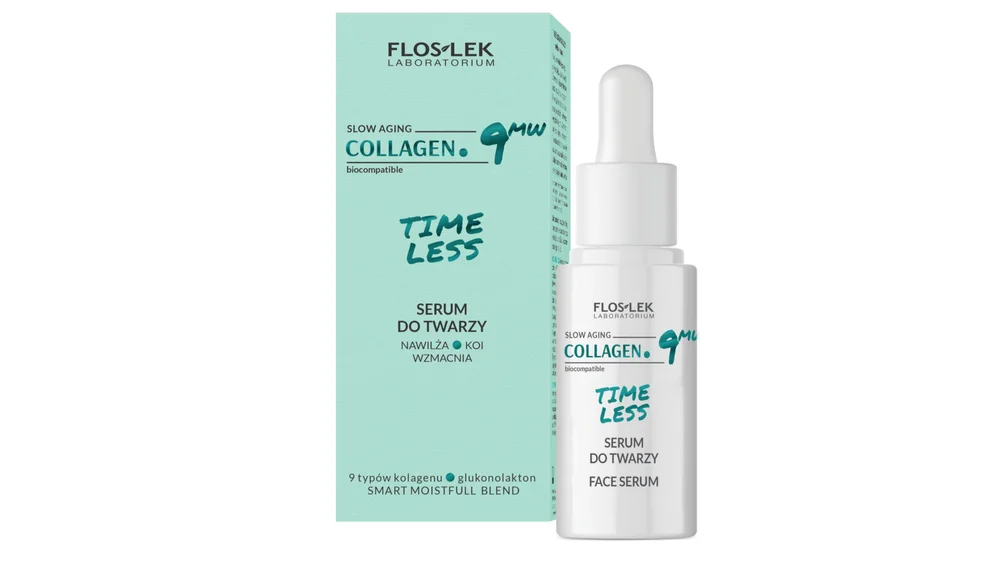 Floslek Collagen. 9MW Timeless, Serum do twarzy nawilża, koi, wzmacnia to produkt kosmetyczny przeznaczony do codziennej pielęgnacji każdego rodzaju skóry twarzy, wymagającej intensywnego nawilżenia, ukojenia oraz wzmocnienia bariery ochronnej.