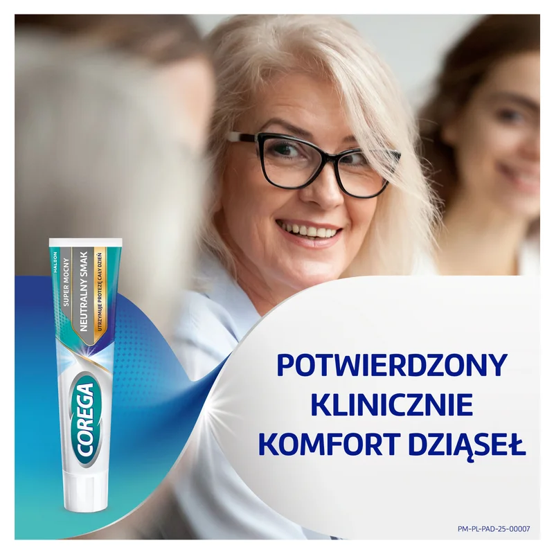 Corega super mocny neutralny smak krem mocujący do protez zębowych to wyrób medyczny zawierający starannie dobraną formułę, która mocuję protezę w trzech kierunkach: góra - dół, przód - tył i na boki.
