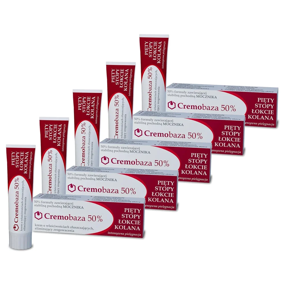 - Cremobaza 50% działa złuszczająco, wspomagając naturalne usuwanie martwego naskórka.