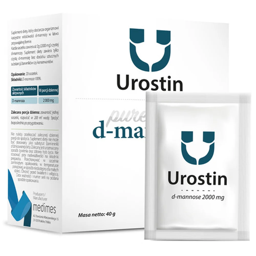 Urostin d-mannoza 2000 mg to suplement diety w postaci saszetek, który w swoim składzie zawiera d-mannozę. Preparat przeznaczony jest dla osób powyżej 18. roku życia.