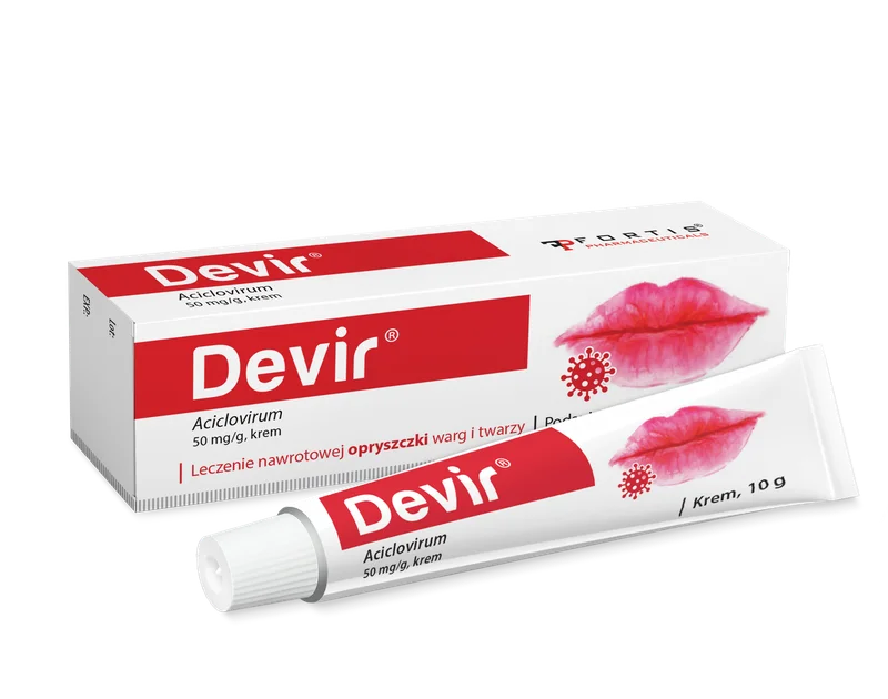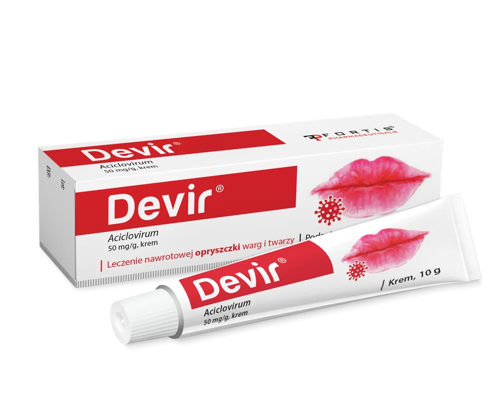 Devir to produkt leczniczy wskazany do stosowania u dorosłych w miejscowym leczeniu nawrotowej opryszczki warg i twarzy, wywołanej przez wirusa opryszczki pospolitej (Herpes simplex).