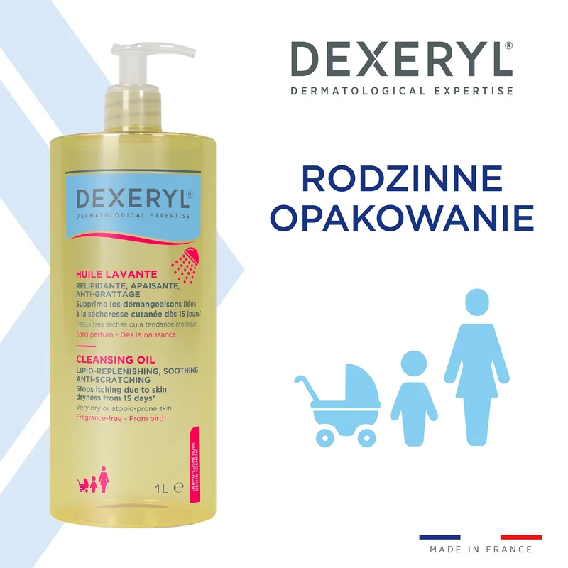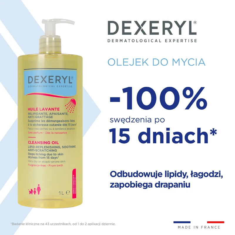 Dexeryl, Olejek do mycia dermokosmetyczny, uzupełniający lipidy łagodzący przeciw drapaniu, 1000 ml