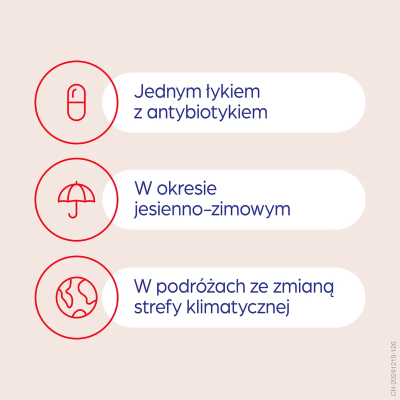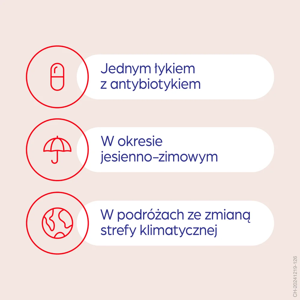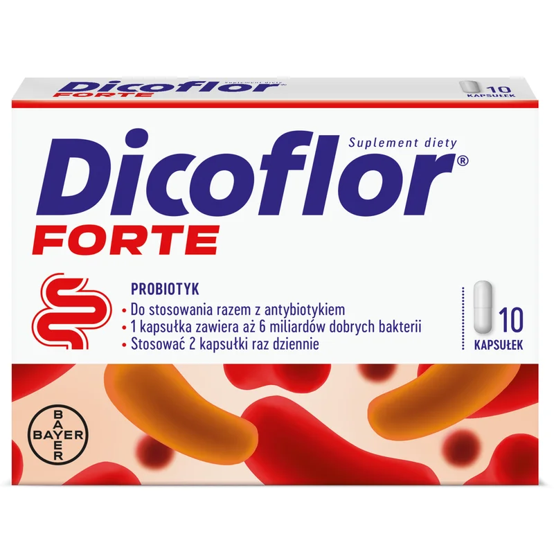 Dicoflor Forte, Probiotyk to suplement diety przeznaczony dla osób dorosłych i dzieci powyżej 3. roku życia. Produkt w swoim składzie zawiera żywe kultury bakterii Lactobacillus rhamnosus GG.