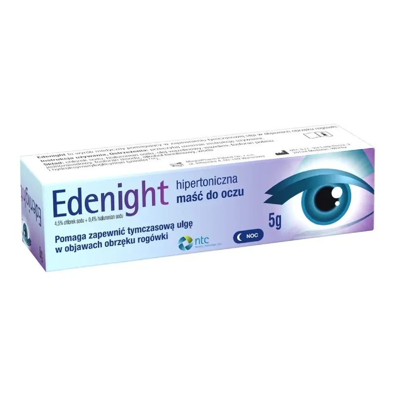 Edenight to wyrób medyczny przeznaczony do stosowania w przypadku podrażnień i dyskomfortu w obrębie oczu. Produkt ma na celu nawilżenie powierzchni oka oraz łagodzenie objawów suchych oczu. Stosowanie maści może przynieść ulgę w dolegliwościach związanych z długotrwałym użytkowaniem soczewek kontaktowych oraz narażeniem na czynniki drażniące. Należy stosować zgodnie z zaleceniami zawartymi w ulotce.Składniki
