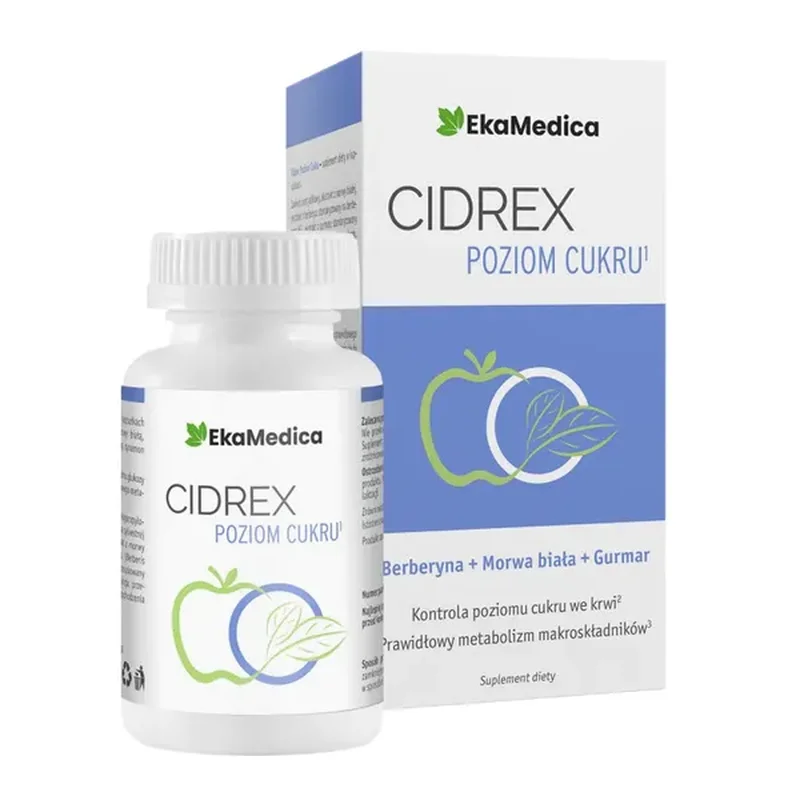 EkaMedica, Cidrex poziom cukru to suplement diety w kapsułkach, którego składniki wspierają prawidłowy poziom glukozy we krwi, pomagają utrzymać zdrowy metabolizm węglowodanów oraz wspomagają codzienne dobre samopoczucie. Produkt przeznaczony dla osób dorosłych.