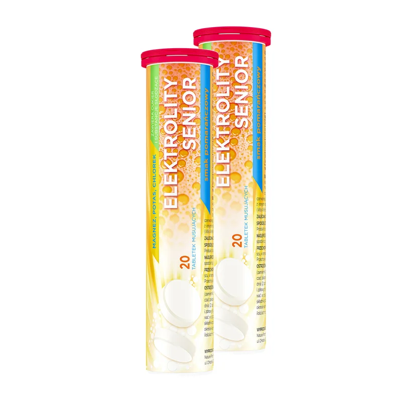 Elektrolity Senior – to suplement diety w postaci tabletek musujących, który w swoim składzie zawiera: potas, magnez, chlorek, sód, glukozę oraz ekstrakt z pestek winorośli. Preparat przeznaczony jest dla osób dorosłych.
