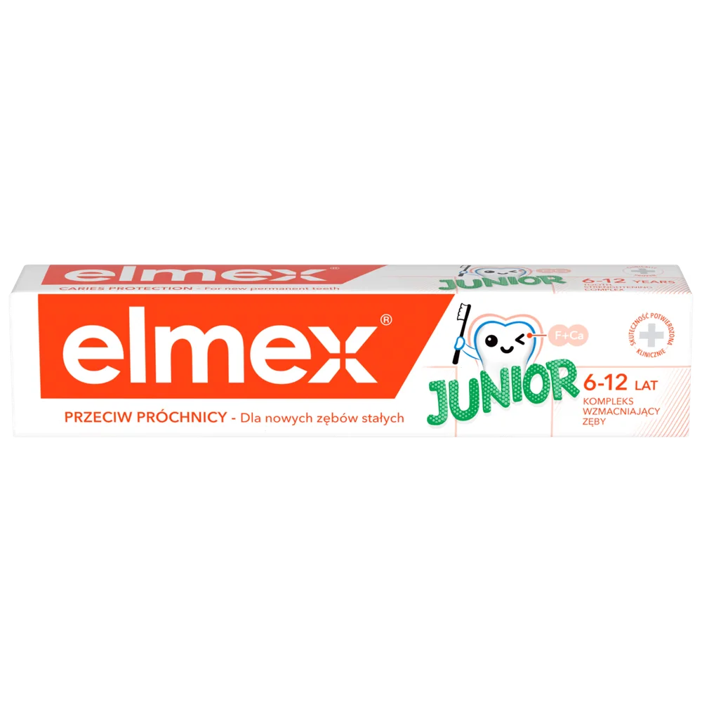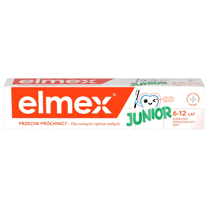 Elmex Junior Przeciw Próchnicy pasta do zębów dla dzieci 6-12 lat - to produkt kosmetyczny przeznaczony do codziennej higieny jamy ustnej oraz zębów dla dzieci.