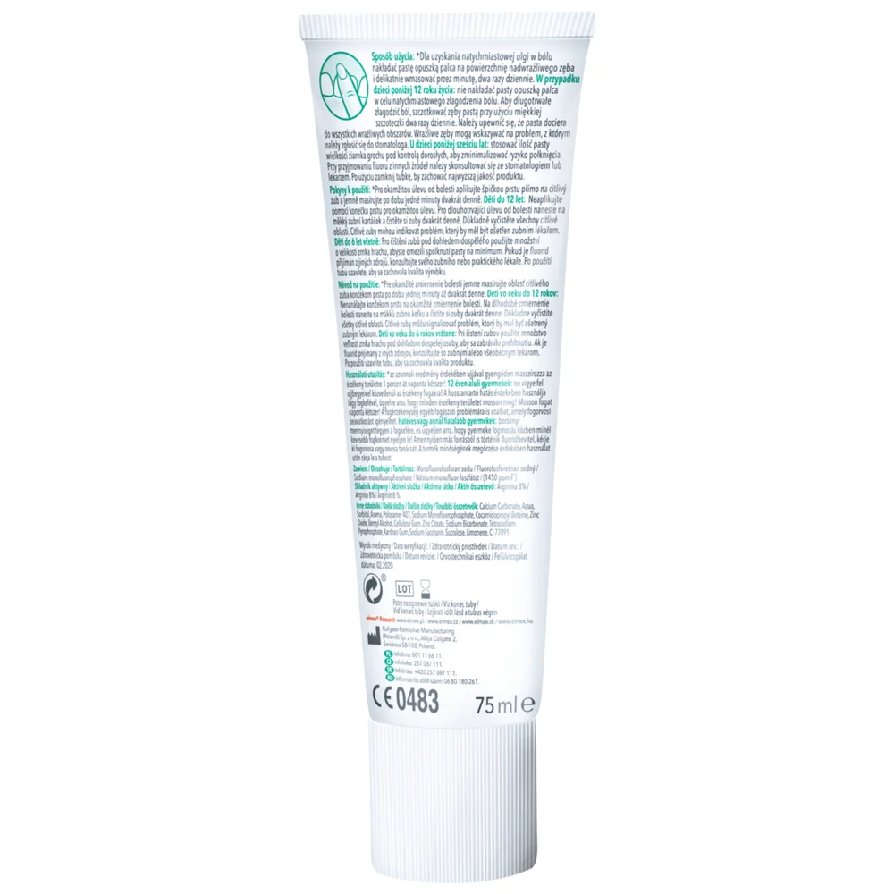 INCI: Arginina 8%, Calcium Carbonate, Aqua, Sorbitol, Aroma, Poloxamer 407, Sodium Monofluorophosphate, Cocamidopropyl Betaine, Zinc Oxide, Benzyl Alcohol, Cellulose Gum, Zinc Citrate, Sodium Bicarbonate, Tetrasodium Pyrophosphate, Xanthan Gum, Sodium Saccharin, Sucralose, Limonene, Cl 77891.Zawartość opakowania