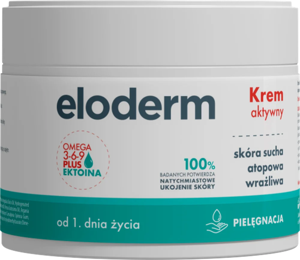 Eloderm to produkt kosmetyczny, przeznaczony do stosowania od 1. dnia życia. Krem aktywny ma na celu nawilżenie oraz wspieranie naturalnej bariery ochronnej skóry. Zalecany do codziennej pielęgnacji, szczególnie w przypadku skóry wrażliwej i skłonnej do podrażnień. Produkt jest łatwy w aplikacji i szybko się wchłania.Składniki/Ingredients