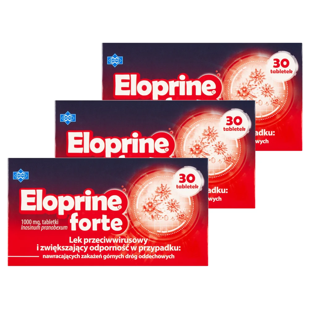 Eloprine Forte 1000 mg to produkt leczniczy zawierający jako substancję czynną inozyny pranobeks, która hamuje in vitro namnażanie chorobotwórczych dla człowieka wirusów z grupy Herpes. Lek stosuje się w przypadku nawracających zakażeń górnych dróg oddechowych.