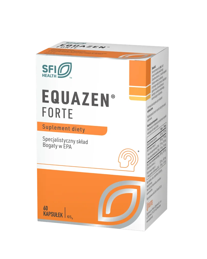 Equazen Forte to suplement diety opracowany z myślą o codziennym uzupełnianiu codziennej diety w kwasy tłuszczowe, których organizm samodzielnie nie wytwarza. Preparat łączy w sobie olej rybi z certyfikowanych źródeł oraz olej z wiesiołka, dostarczając istotnych kwasów omega-3 i omega-6. Składniki suplementu wspierają prawidłowe funkcjonowanie układu nerwowego, a także pamięć i koncentrację. Rekomendowany dla dzieci od 5 lat oraz osób dorosłych.