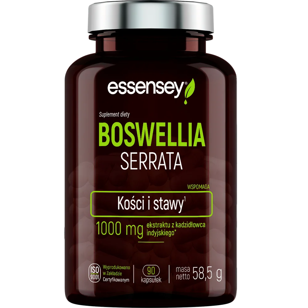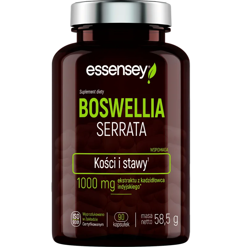 Essensey Boswellia Serrata to suplement diety, którego składniki wspierają funkcje stawów oraz elastyczność tkanek. Boswellia serrata jest znana ze swojego potencjału w zakresie wspomagania mobilności stawów. Suplement ten może być stosowany w codziennej diecie jako element wsparcia dla organizmu. Produkt odpowiedni dla osób dorosłych aktywnych fizycznie.