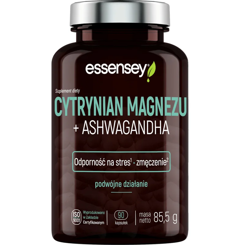 Essensey Cytrynian Magnezu + Ashwagandha to suplement diety opracowany dla osób dorosłych. Produkt w swoim składzie zawiera ekstrakt z korzenia Ashwagandhy, magnez oraz witaminę B6.