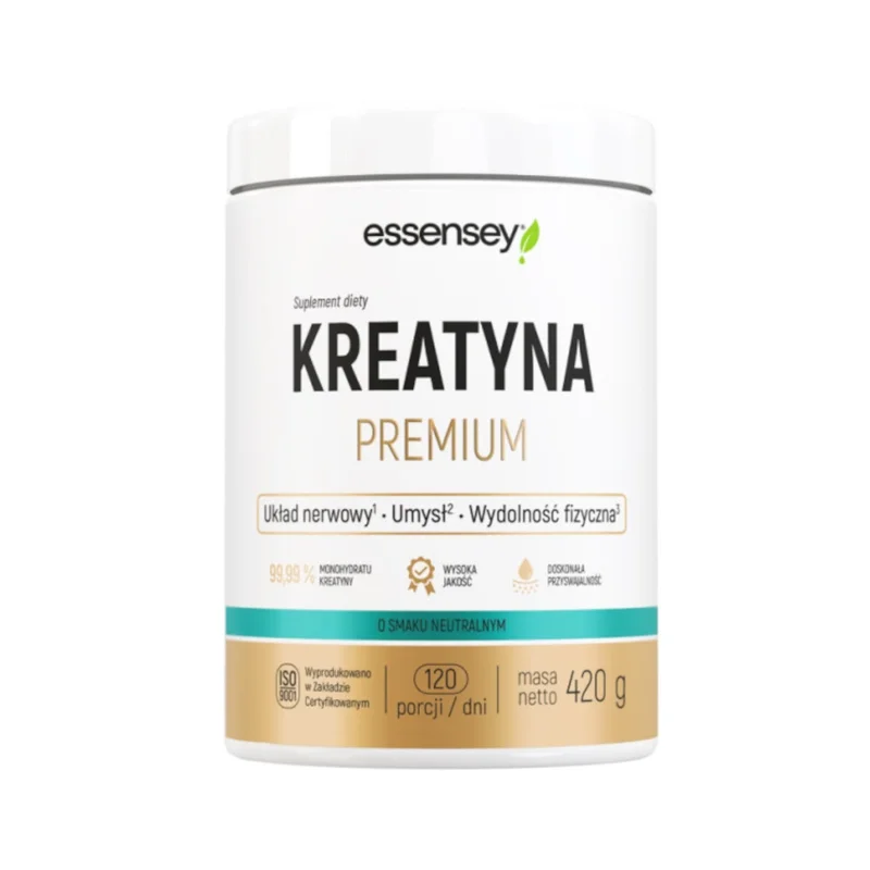 Essensey Kreatyna Premium Natural to suplement diety zawierający składniki wspierające pracę układu nerwowego, utrzymanie prawidłowych funkcji psychologicznych oraz pomagających w redukcji uczucia zmęczenia i znużenia. Produkt w formie proszku o smaku neutralnym, przeznaczony dla osób dorosłych, aktywnych fizycznie.