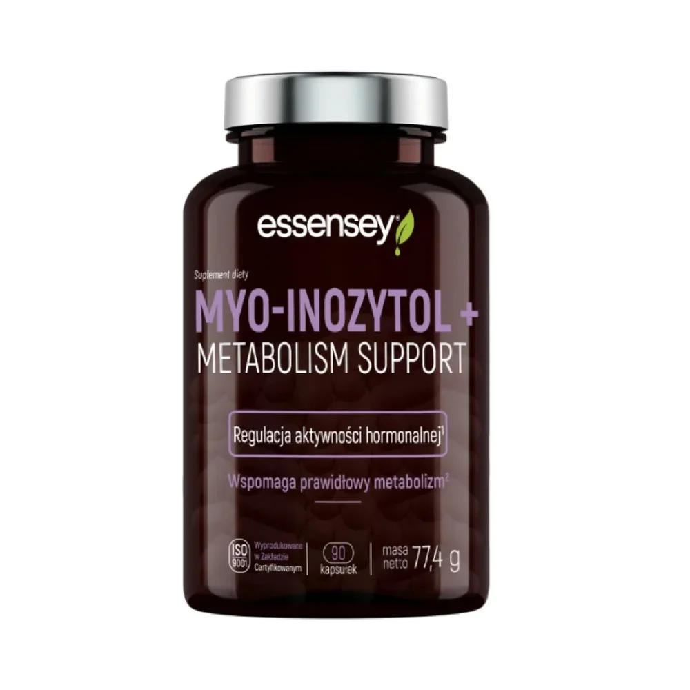 Essensey Myo-Inozytol + Metabolism Support to suplement diety, którego składniki wspierają prawidłowy metabolizm oraz różnorodne procesy metaboliczne organizmu. Myo-inozytol jest substancją naturalną, a dodatkowe składniki suplementu przyczyniają się do wsparcia równowagi hormonalnej i regulacji procesów energetycznych. Produkt przeznaczony jest dla osób dorosłych dążących do uzupełnienia diety w istotne składniki wspomagające funkcjonowanie organizmu.