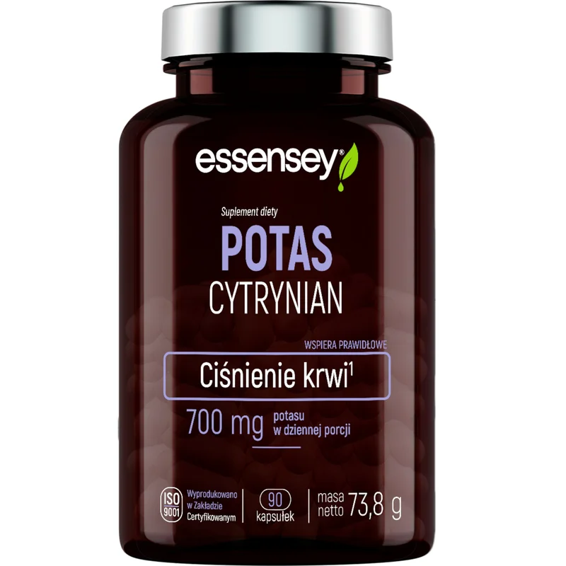 Essensey Potas Cytrynian to suplement diety opracowany dla osób dorosłych. Produkt w swoim składzie zawiera potas.