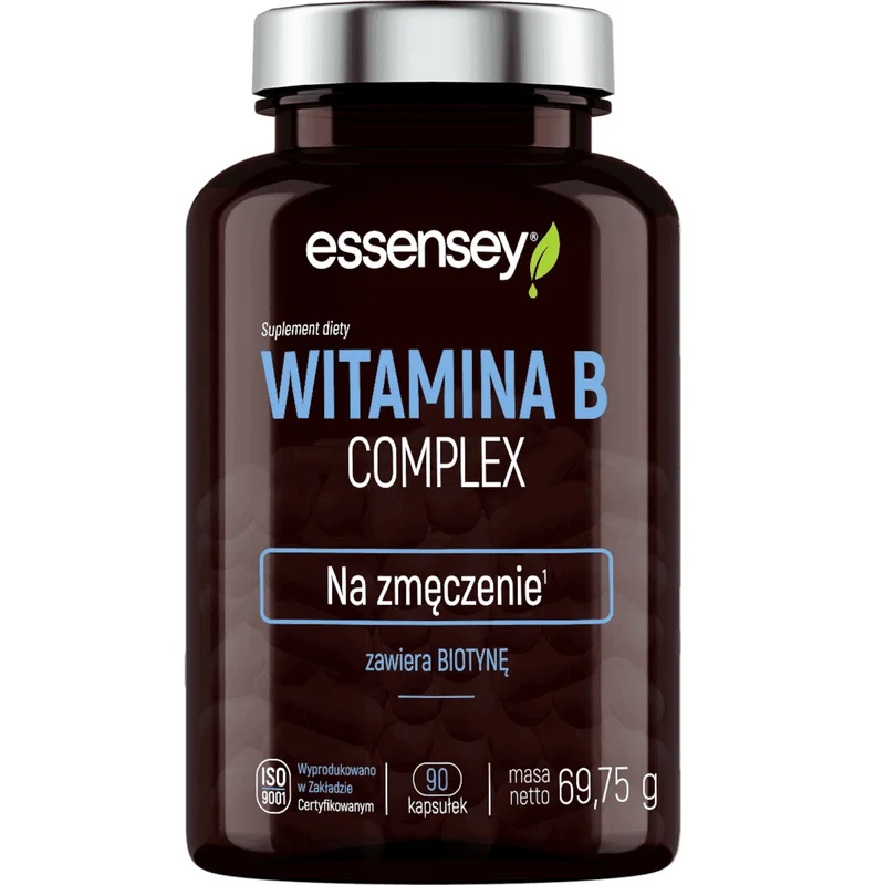 Essensey Witamina B Complex to suplement diety w formie kapsułek, zawierający witaminy z grupy B. Produkt przeznaczony dla osób dorosłych.