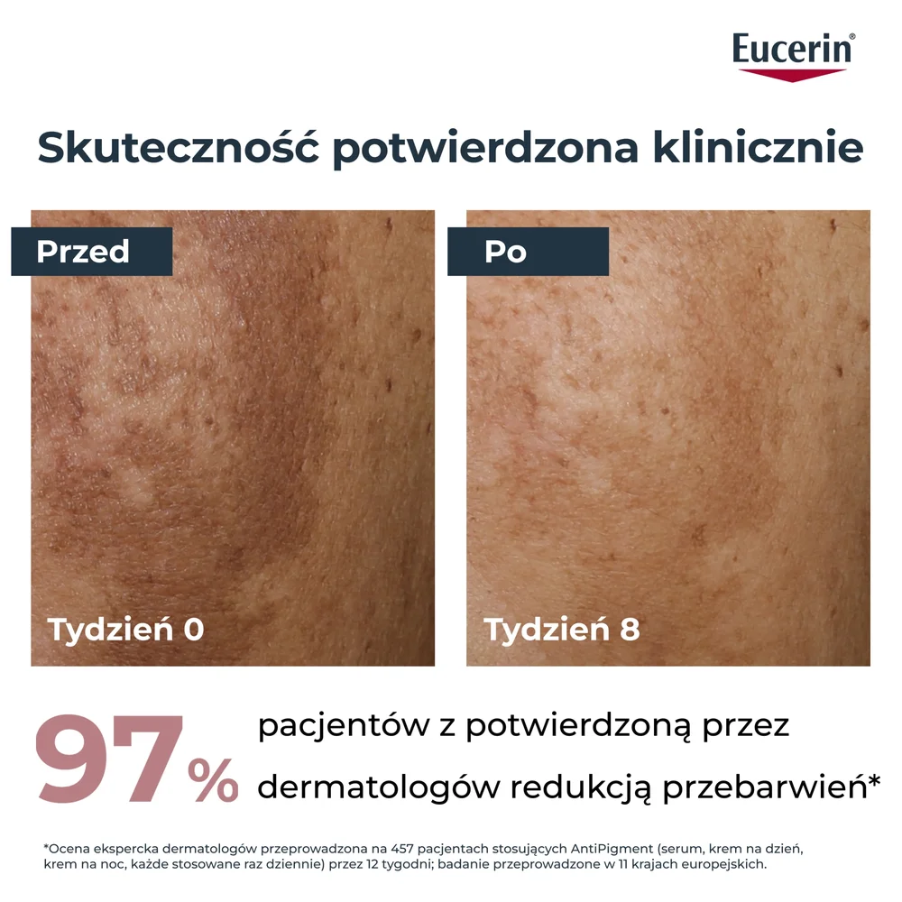 Eucerin, Anti-Pigment, serum o podwójnym działaniu, redukuje przebarwienia to produkt kosmetyczny przeznaczony do zmniejszania przebarwień skóry i zapobiegania ich powstawaniu, wspierając jednocześnie jednolity i promienny koloryt cery. Produkt dla osób dorosłych.