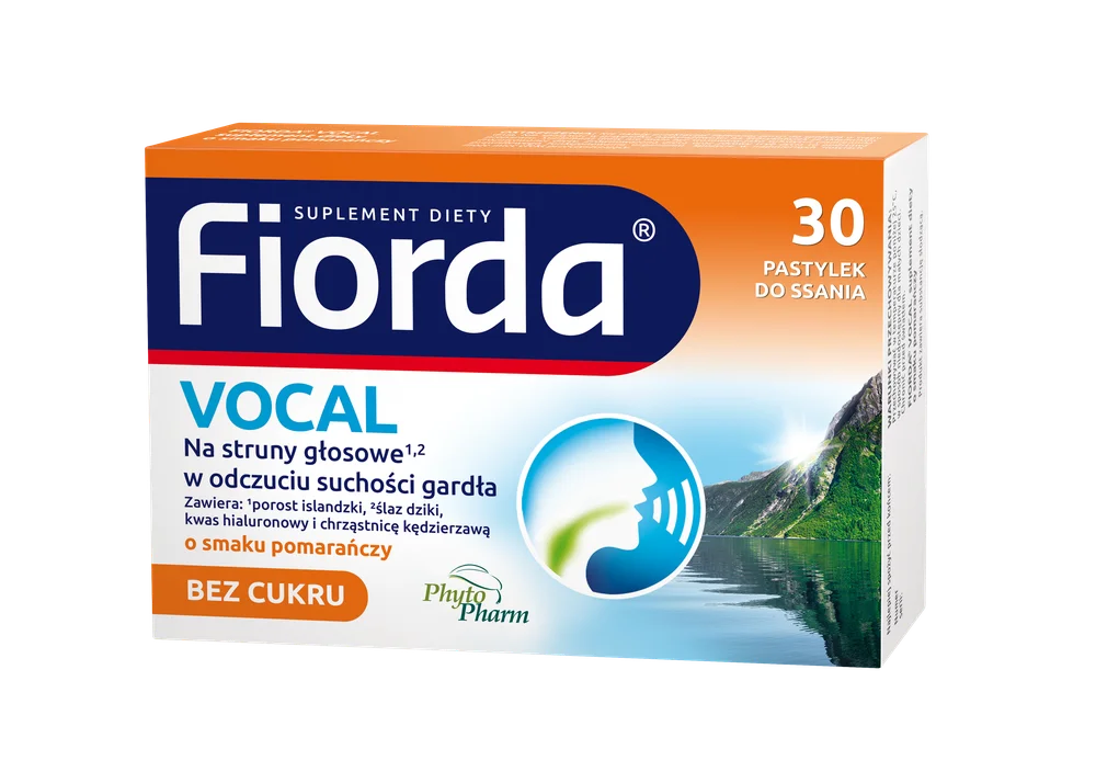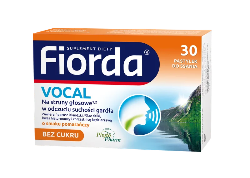 Fiorda Vocal o smaku pomarańczowym to suplement diety, który zawiera składniki wspierające funkcje dróg oddechowych oraz sprzyjające nawilżeniu błon śluzowych. Produkt przeznaczony do stosowania u dorosłych, młodzieży oraz dzieci powyżej 4. roku życia.