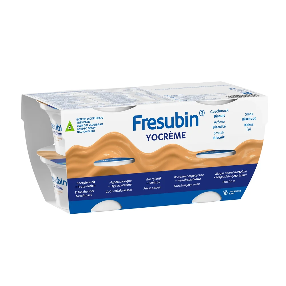Fresubin Yocreme o smaku biszkoptowym to dietetyczny środek spożywczy specjalnego przeznaczenia medycznego, który wskazany jest do postępowania dietetycznego u osób zagrożonych niedożywieniem lub niedożywionych, w szczególności z zaburzeniami połykania (dysfagia) lub zwiększonym zapotrzebowaniem na białko i energię.Masa netto