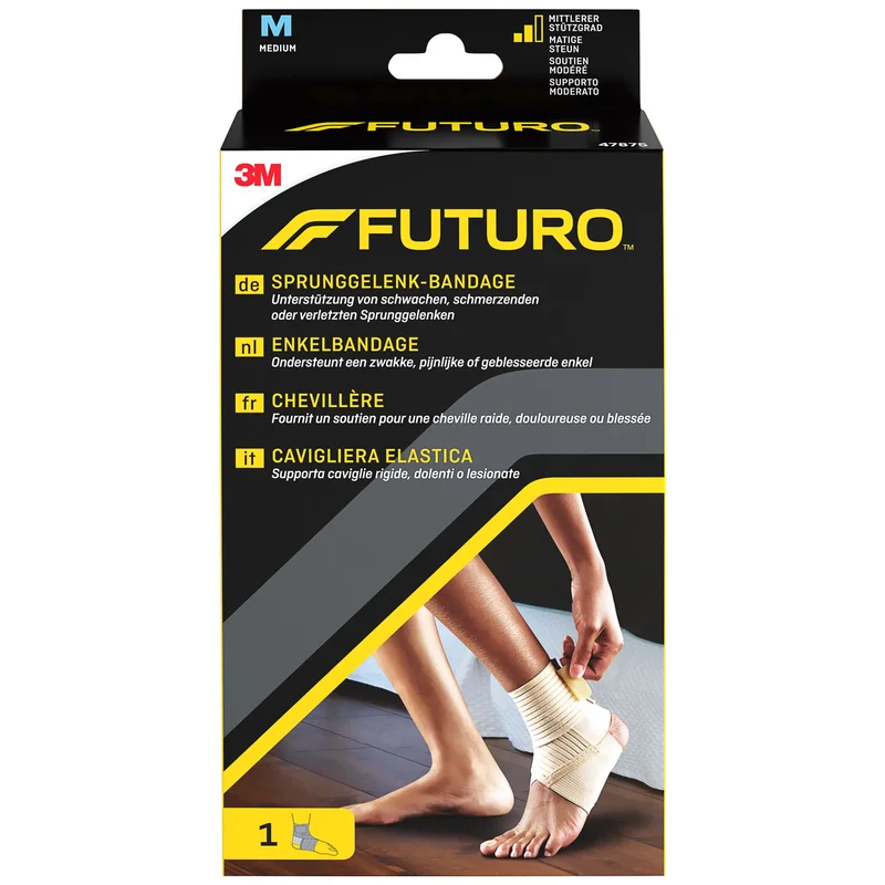 Futuro Opaska stabilizująca staw skokowy rozmiar M to wyrób medyczny, zapewniający ochronę stawu przy osłabieniu, bólach i urazach kostki.