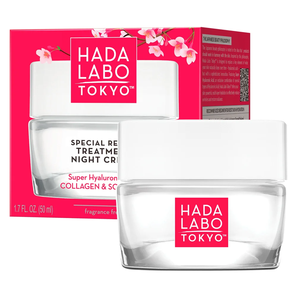 Hada Labo Tokyo, Special Repair Treatment - Night Cream Int to produkt kosmetyczny stworzony z myślą o skórze wymagającej intensywnej regeneracji i wsparcia przeciwzmarszczkowego. Formuła opiera się na kompleksie Super Hyaluronic Acid™ oraz składnikach o działaniu naprawczym i ochronnym, takich jak kolagen i skwalan, aby w czasie snu przywracać skórze komfort, gładkość i młodszy wygląd.