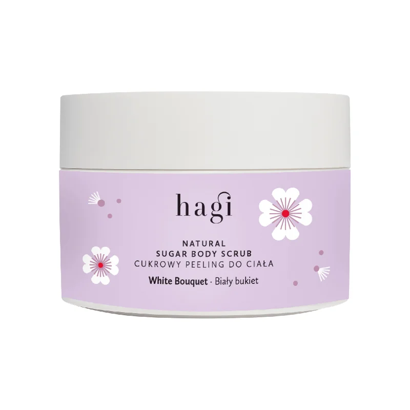Pozwól swojej skórze rozkwitnąć dzięki cukrowemu peelingowi Biały Bukiet od Hagi.