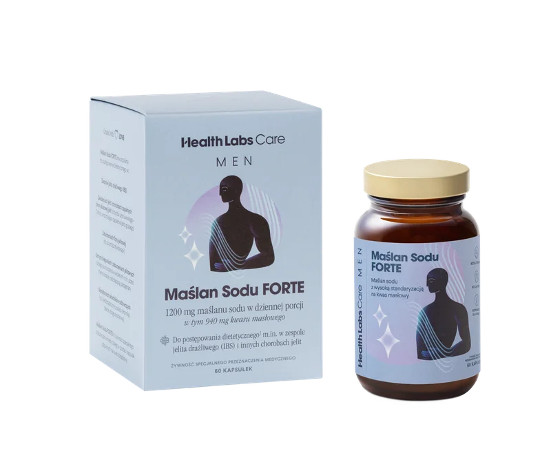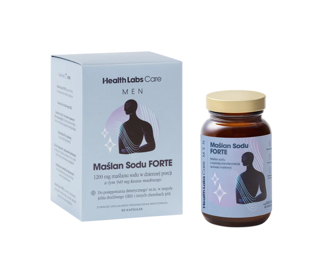 Health Labs, Maślan Sodu Forte Men to środek spożywczy specjalnego przeznaczenia medycznego opracowany z myślą o wsparciu układu pokarmowego u mężczyzn.