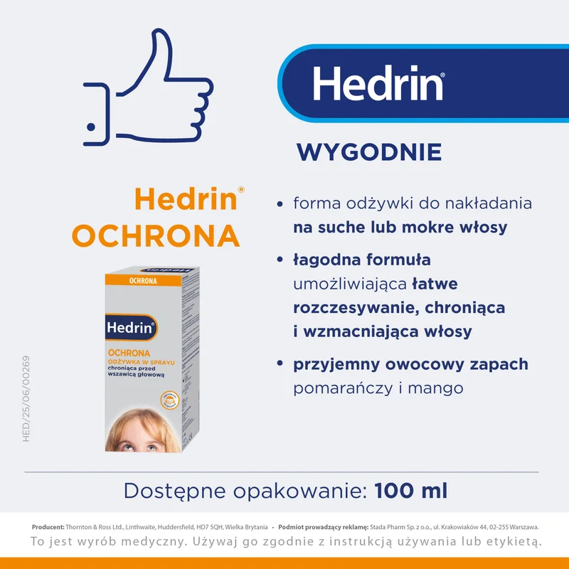 Hedrin Ochrona Odżywka do włosów w sprayu, 100 ml