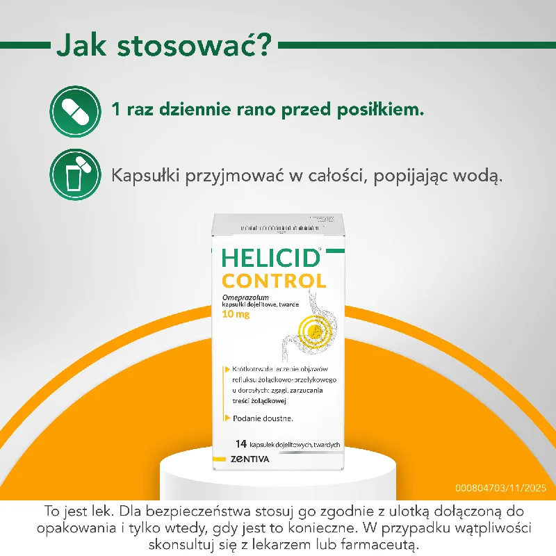Helicid Control to produkt leczniczy należący do grupy leków określanej mianem „inhibitorów pompy protonowej”. Lek Helicid Control jest stosowany u pacjentów dorosłych w leczeniu krótkoterminowym objawów refluksu żołądkowo-przełykowego (np. zgagi i zarzucania kwaśnej treści żołądkowej do przełyku).