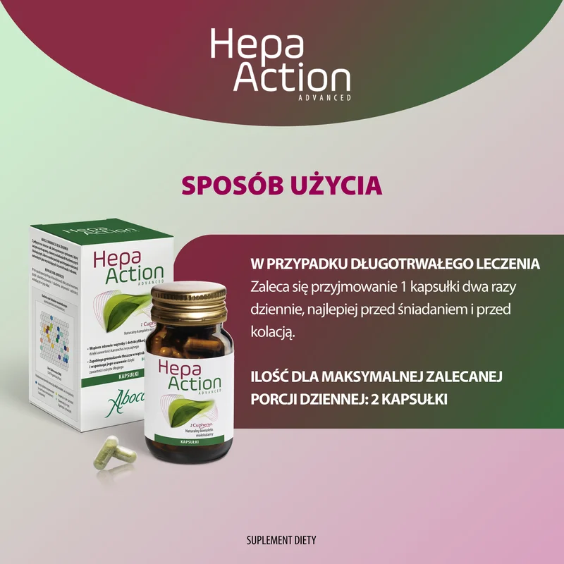 Hepa Action Advanced to suplement diety, którego składniki wspierają prawidłowe funkcjonowanie wątroby oraz procesy detoksykacji organizmu. Zawiera substancje, które mogą wspomagać metabolizm i procesy trawienne. Wysoka jakość składników została doceniona przez osoby zainteresowane wsparciem układu pokarmowego. Suplement przeznaczony jest dla tych, którzy poszukują wsparcia w codziennej diecie.Składniki