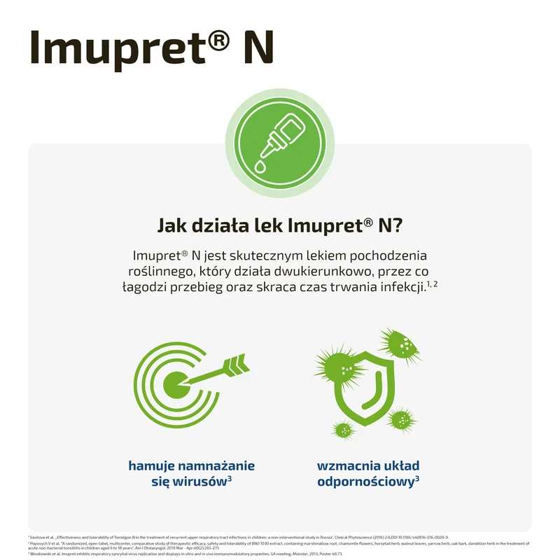 Imupret N, 1 ml/ml, krople doustne to produkt leczniczy tradycyjnie stosowany przy pierwszych oznakach oraz w czasie trwania przeziębienia.