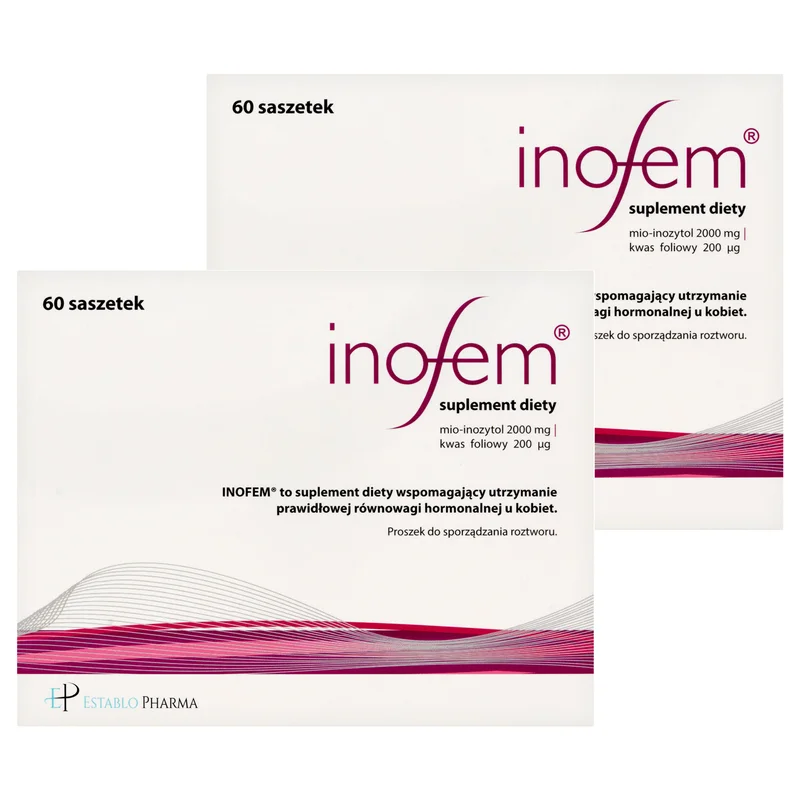 Inofem – suplement diety dla dorosłych, zawierający mio-inozytol i kwas foliowy, wspierający prawidłową równowagę hormonalną u dorosłych kobiet.