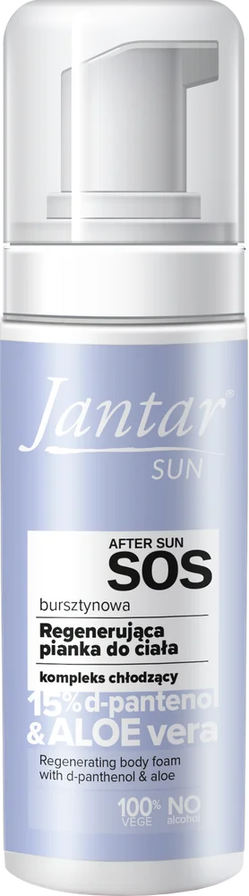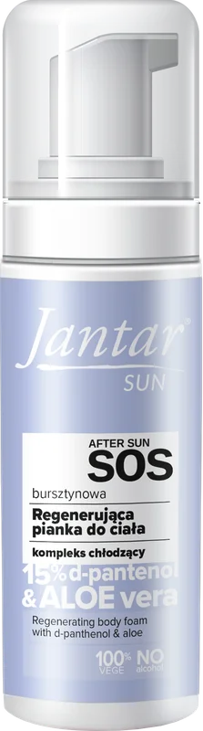 Jantar Sun Bursztynowa Regenerująca pianka do ciała z kompleksem chłodzącym to produkt kosmetyczny, który nawilża i regeneruje skórę. Dzięki zastosowanemu kompleksowi chłodzącemu przynosi uczucie orzeźwienia. Pianka jest łatwa do aplikacji i szybko się wchłania, co wpływa na komfort użytkowania. Produkt przeznaczony jest do pielęgnacji ciała, Bursztyn zawarty w formule wspiera regenerację naskórka. Produkt odpowiedni dla osób dorosłych oraz dzieci powyżej 3. roku życia.