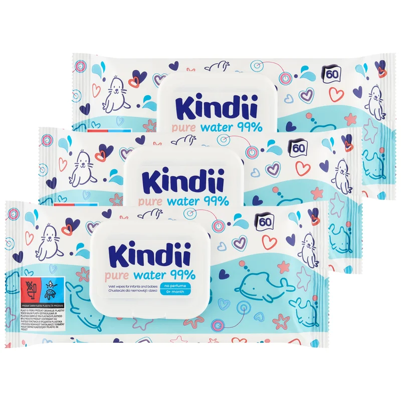 Kindii Pure Water 99% chusteczki nawilżane 60 sztuk