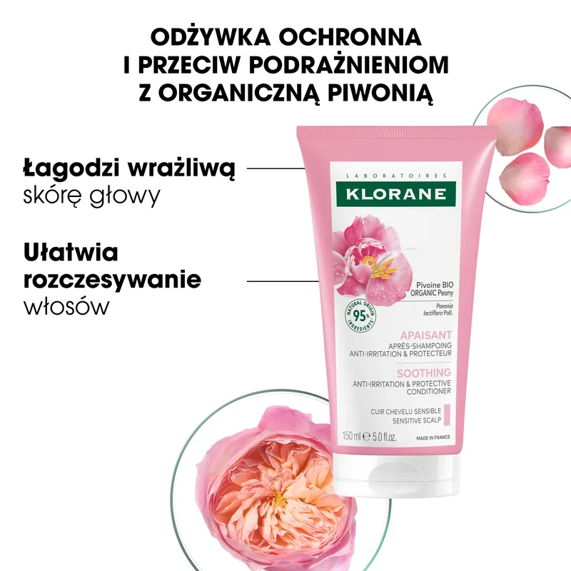 Odżywka z organiczną piwonią Klorane przeznaczona jest do każdego typu włosów.Właściwości produktu