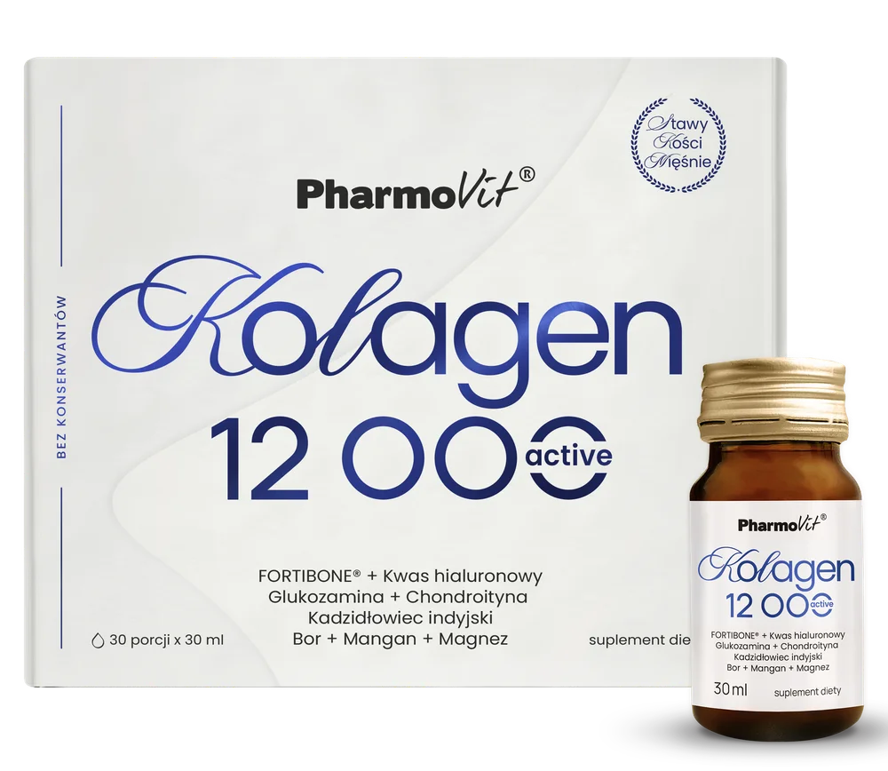 Kolagen 12 000 Active to suplement diety zawierający składniki wspierające zdrowie kości i stawów. Produkt w formie shota o smaku owoców tropikalnych z nutą cytryny został opracowany dla osób dorosłych.