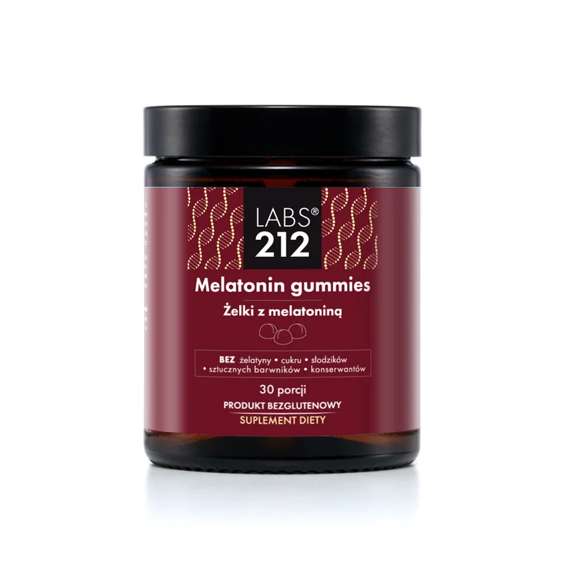 Labs212 Melatonin Gummies to suplement diety w formie żelek, którego składniki wspierają regulację rytmu snu i pomagają w zasypianiu. Produkt dla osób dorosłych.