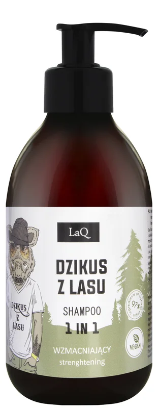 LaQ Dzikus z lasu, Naturalny szampon do włosów dla mężczyzn z kompleksem wzmacniającym z żeń-szenia, łopianu, skrzypu i przytulii, 300 ml