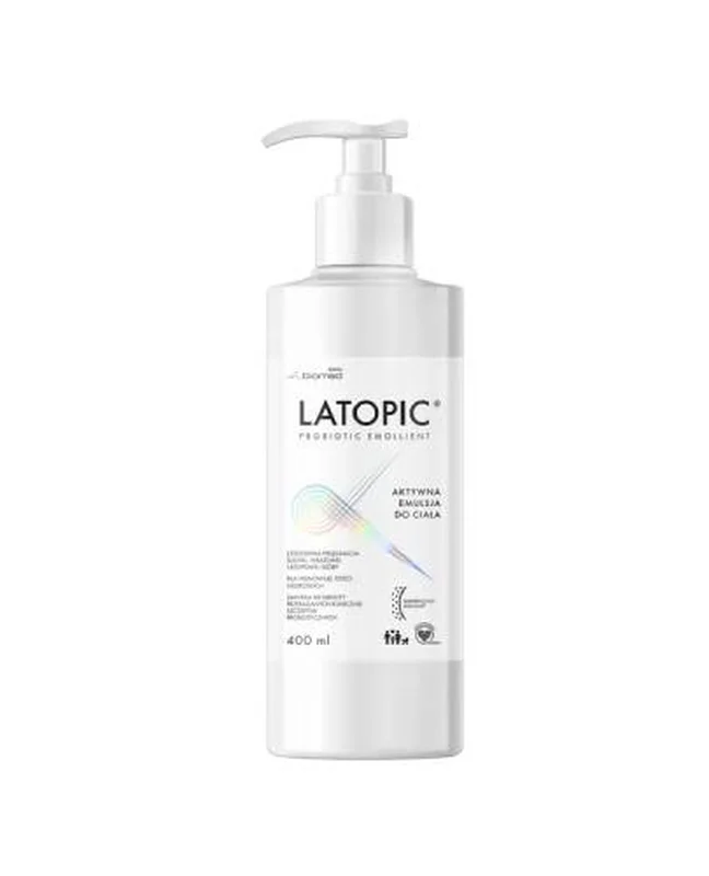 Emulsja do ciała Latopic pielęgnuje, chroni i odżywia skórę atopową, suchą i skłonną do podrażnień. Skutecznie nawilża, natłuszcza, łagodzi świąd i regeneruje skórę. Przeznaczona do codziennej pielęgnacji niemowląt, dzieci i dorosłych.