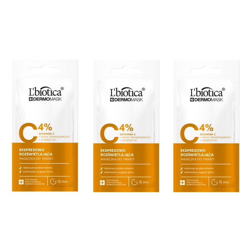 L'Biotica Dermomask ekspresowo rozświetlająca maseczka do twarzy z witaminą C to produkt kosmetyczny do intensywnej pielęgnacji cery szarej, z przebarwieniami i o nierównym kolorycie.