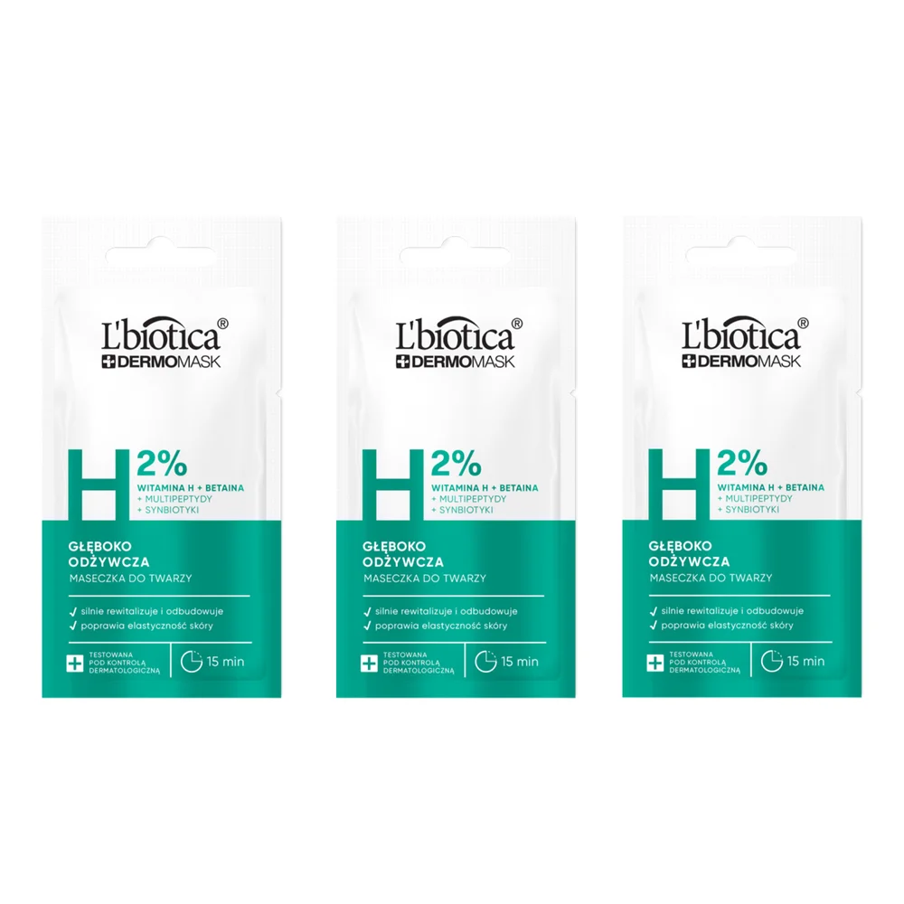 L'Biotica Dermomask głęboko odżywcza maseczka do twarzy z witaminą H 8 ml