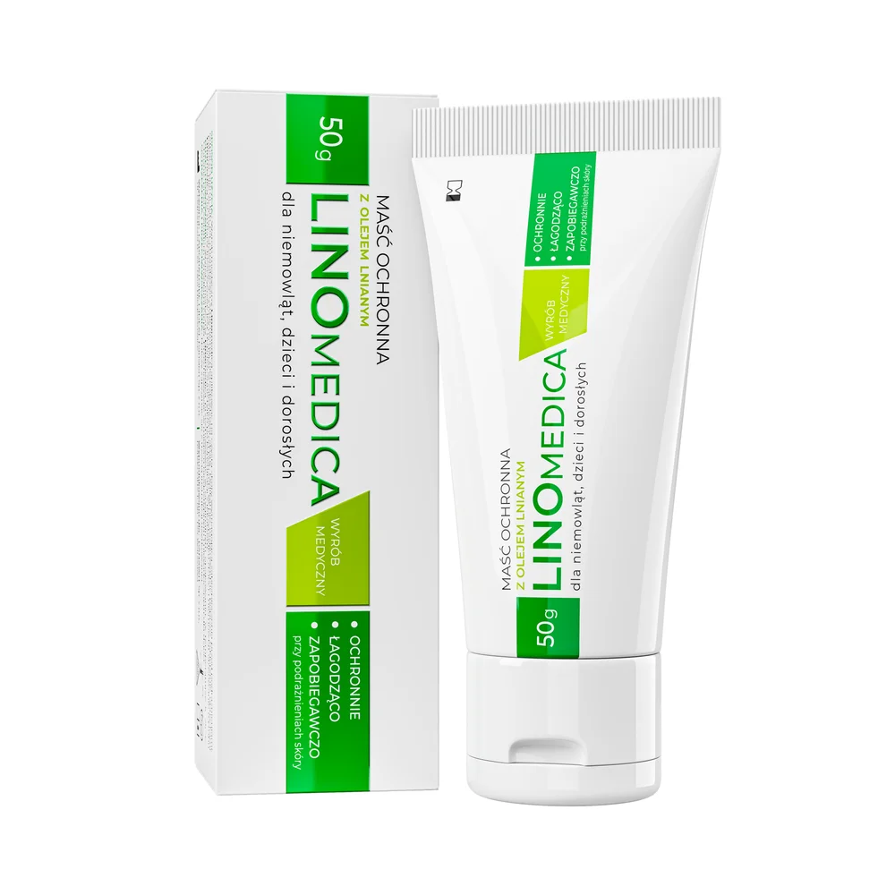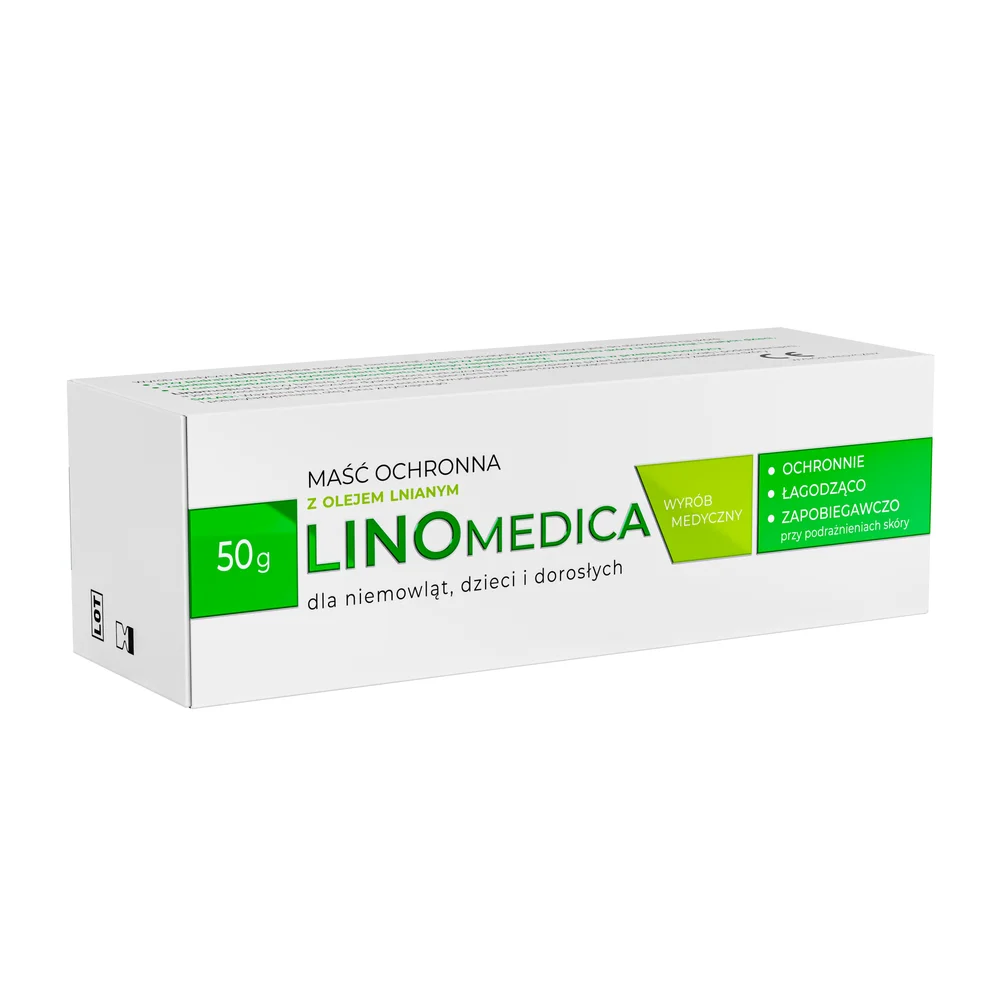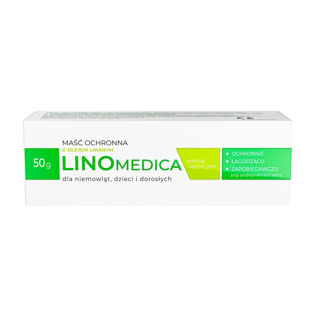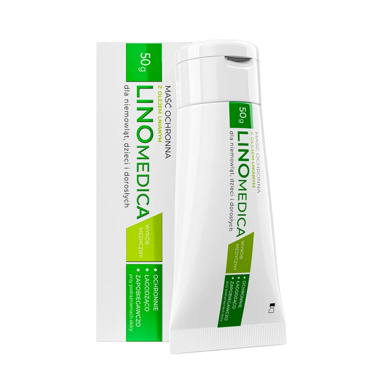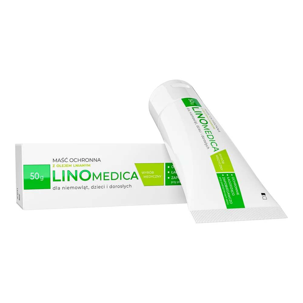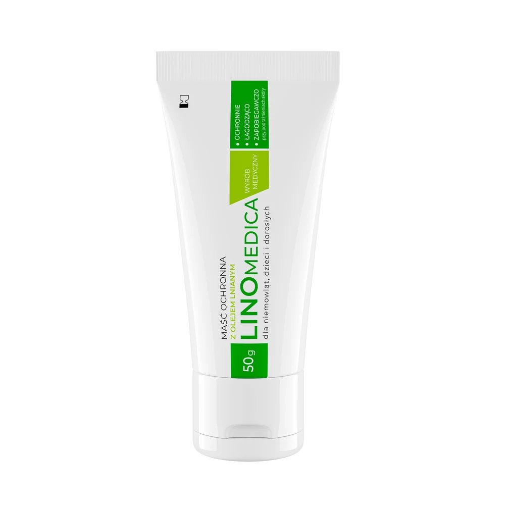 Linomedica Maść ochronna z olejem lnianym to wyrób medyczny natłuszczający i chroniący przed podrażnieniami dla niemowląt, dzieci i dorosłych.
