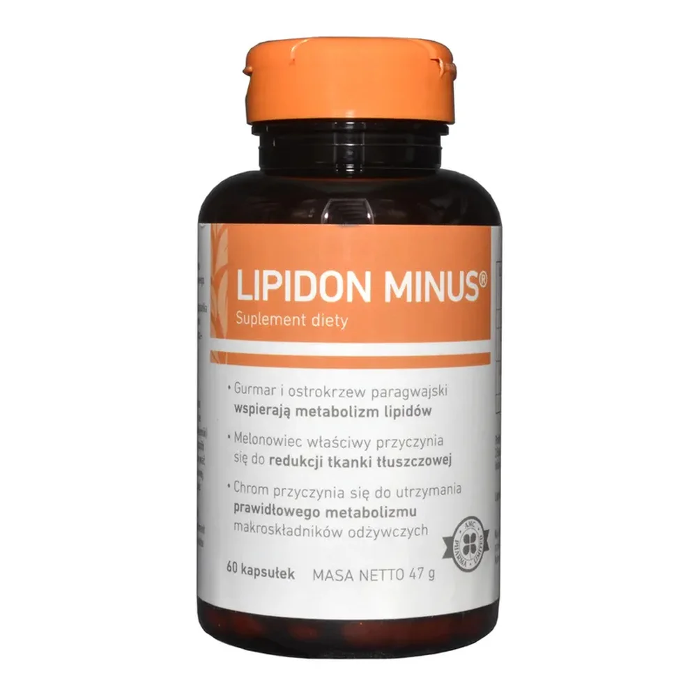 AMC, Lipidion Minus to suplement diety w postaci kapsułek, którego składniki wspomagają redukcję tkanki tłuszczowej, prawidłowy metabolizm i kontrolę masy ciała, a także wspierają dobre samopoczucie podczas codziennej aktywności. Produkt przeznaczony dla osób dorosłych.