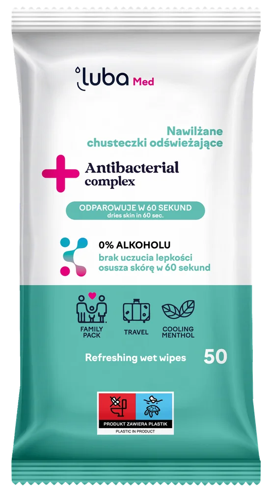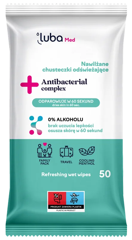Luba Med. Nawilżane Chusteczki Odświeżające Antibacterial Complex, 50 sztuk
