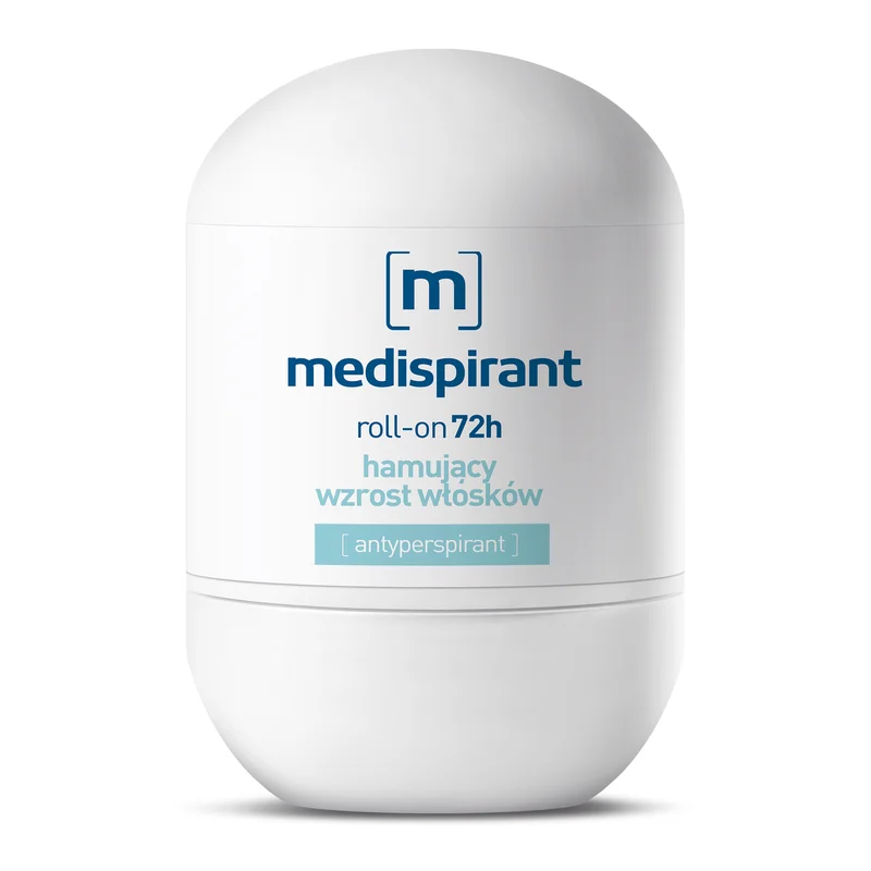 Medispirant roll-on 72h hamujący wzrost włosków to produkt kosmetyczny. Zawiera unikalną formułę, która hamuje odrost włosków, zapewniając długotrwałe uczucie gładkiej skóry. Produkt przeznaczony jest do stosowania na skórę pod pachami i innych miejscach, gdzie niepożądane owłosienie może być problemem. Dzięki zastosowaniu wygodnego aplikatora w formie roll-on, łatwo nanosimy preparat na skórę. Produkt nie zawiera parabenów i jest odpowiedni do codziennego użytku.Składniki/Ingredients
